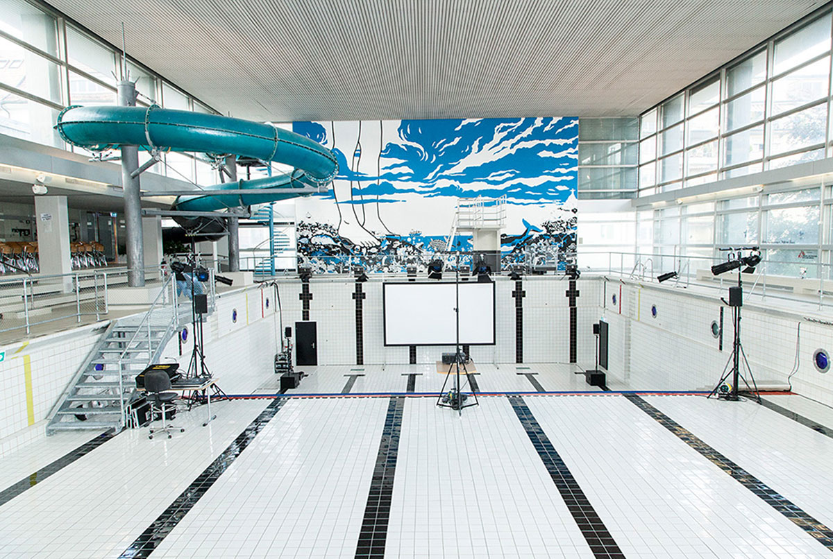 Umnutzung des Schwimmerbeckens als Veranstaltungsraum. (Foto: Jorgos Ledermann)